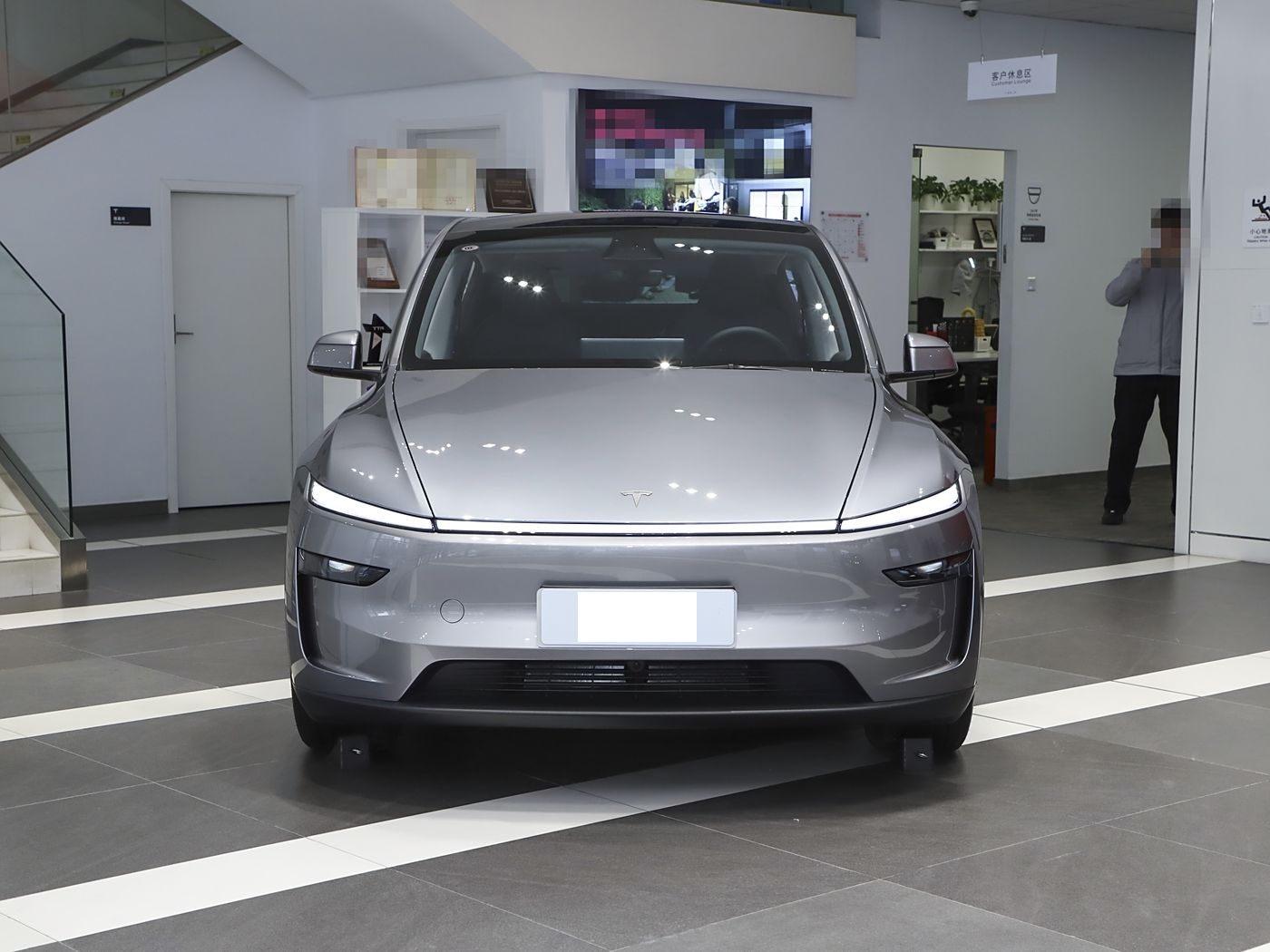 我们首先来看新车的外观设计方面,车头设计延续家族极简风格却暗藏巧思,封闭式格栅线条更趋锐利,搭配微微下探的前舱盖,既优化了空气动力学表现,又营造出低趴运动姿态。灯组系统迎来关键升级,采用与改款 Model 3 同源的一体式设计,灯腔置于保险杠上方与车牌平齐,形成独特 “低眼” 视觉效果,内部 LED 光源支持自适应远近光与动态转向功能,前保险杠新增盲区摄像头,配合自清洁功能,为智能驾驶提供更清晰的环境感知。新增的冰河蓝车漆成为视觉亮点,在不同光线下呈现细腻光泽,搭配简约前包围设计,使整车风阻系数维持在优秀水准,为长续航奠定基础。